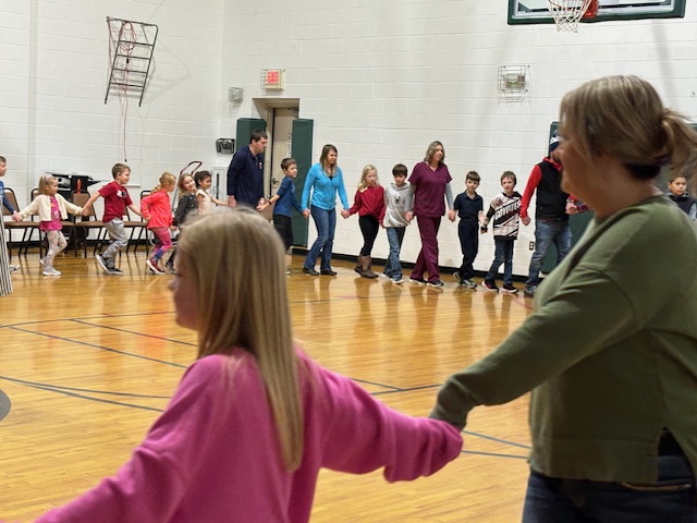 Lenore spends most of her time teaching and calling dances in school gymnasiums. Custom tailored to fit the needs and ages of each school, Lenore spends her day teaching and calling student dances. School residencies culminate with a family dance at the end of the week where students and parents, grandparents and other family members have the opportunity to dance together in a fun, teacher led gathering.
